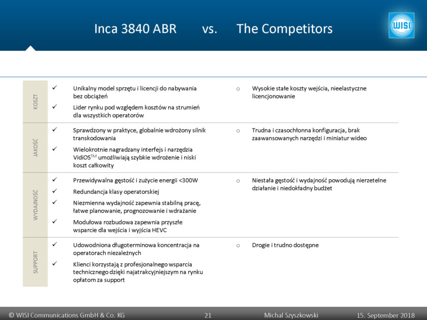 Rozwiązanie WISI jest idealne dla nadawców oraz dostawców usług telewizyjnych i wideo, którzy chcą znacząco obniżyć koszty dystrybucji. Unikalna platforma Smart Broadcast Firefly oferuje również nowe opcje dla operatorów sieci kablowych i umożliwia branży hotelarskiej wzbogacanie istniejących ofert o dodatkowe treści i usługi wideo. Na przykład usługodawcy mogą teraz dostarczać widzom z zagranicy kanały telewizyjne z ich krajów macierzystych, których nie można odbierać za pośrednictwem usług ogólnodostępnych. Platforma oferuje także nowe i wydajne rozwiązania dla korporacyjnych systemów telewizyjnych, które umożliwiają dotarcie do pracowników znajdujących się w różnych miejscach kraju i świata.